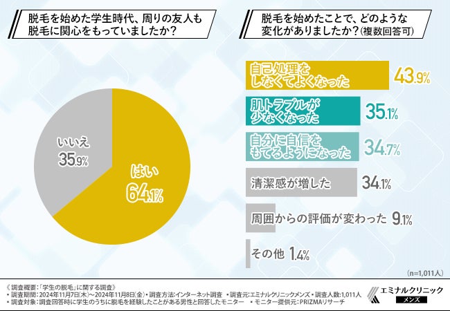 脱毛によって自己管理の負担が軽減され、肌トラブルが少なくなったり、見た目も向上したという声もあったようです。
