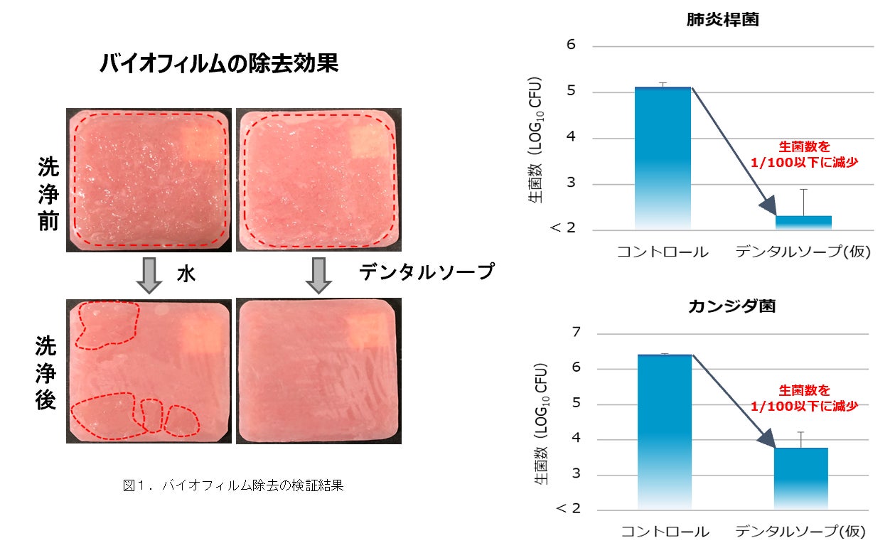 口腔内装置用洗浄剤市場においては、従来「洗浄力」が重視され、高齢者をはじめとした抵抗力が落ちている方やアレルギーのある方については洗浄力の高さによっては口内が荒れることがあるものの、使用者のお口の粘膜や体へのやさしさはあまり重要視されていませんでした。当社は「健康な体ときれいな水を守る。」という企業理念を掲げており、口腔内装置の洗浄剤についても「体にやさしく、なおかつ洗浄性能も担保した製品を作りたい」と考え、「シャボン玉 デンタルソープ Dental Soap」を開発しました。なお、当社は口腔ケアについては「シャボン玉せっけんハミガキ」「シャボン玉薬用せっけんハミガキ」「シャボン玉こどもせっけんハミガキ」などを製造・販売しており、また2020年から歯科業界専売の手洗い石けん「バブルガード For Dental」も販売しています。