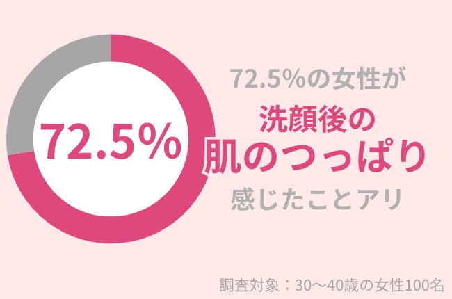 調査の結果、72.5%の30代女性が洗顔後の肌のつっぱりを感じたことがあるとわかりました。
