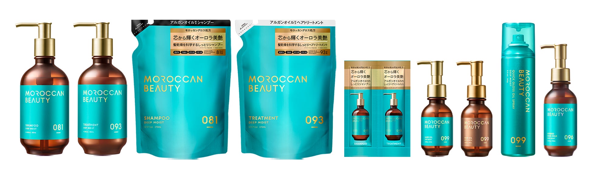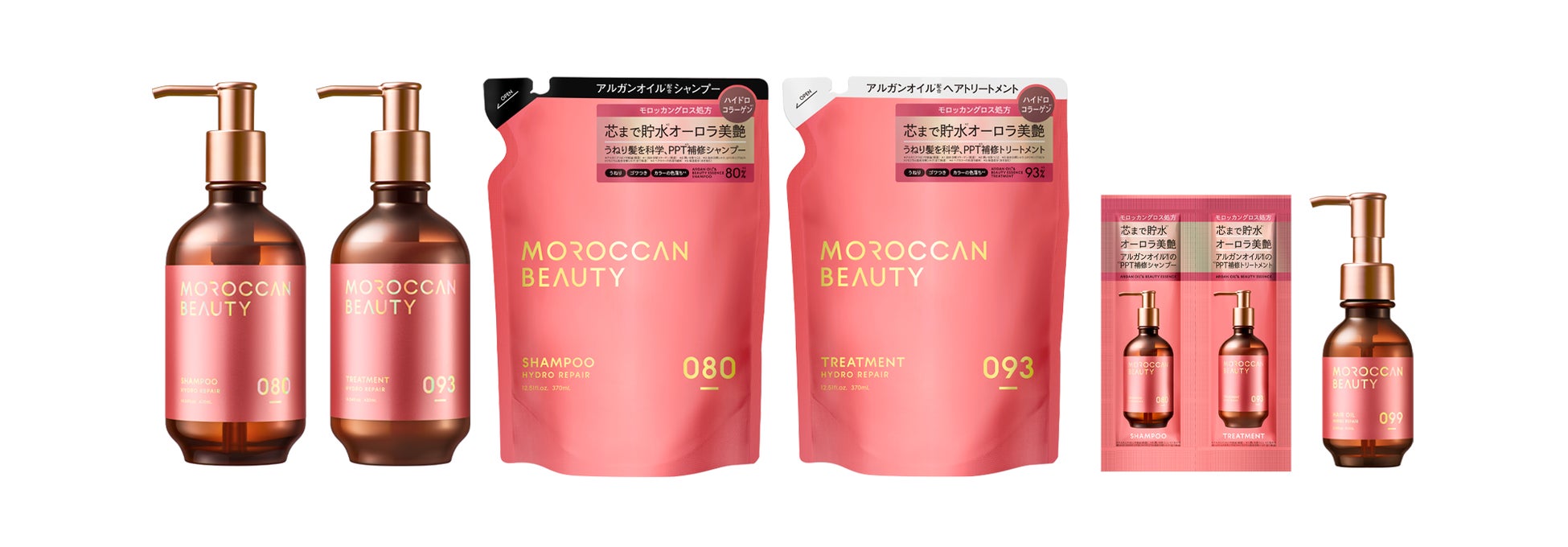 *1 アルガニアスピノサ核油(保湿) *2 潤いを保つこと *3 アルガニアスピノサカルス培養エキス(保湿) *4 オプンチアフィクスインジカ種子油(保湿) *5 センチフォリアバラ花油(保湿) *6 当社比 *7 髪内部のダメージのこと *8 イソステアロイル加水分解ケラチン(羊毛) *9 ワサビノキ種子油 *10 コメヌカスフィンゴ糖脂質、スフィンゴ糖脂質 *11 γ-ドコサラクトン(保湿)/(ジヒドロキシメチルシリルプロポキシ)ヒドロキシプロピル加水分解シルク、(アブラナ種子油/シナアブラギリ種子油)コポリマー(全て保湿) *12 加水分解コラーゲン(保湿)[モロッカンビューティ ハイドロリペア シャンプー、モロッカンビューティ ハイドロリペア ヘアトリートメントに配合]/イソステアロイル加水分解コラーゲン(保湿)[モロッカンビューティ ハイドロリペア ヘアオイルに配合] *13 加水分解シルク、ヒドロキシプロピルトリモニウム加水分解シルク(全て保湿)[モロッカンビューティ ハイドロリペア シャンプー、モロッカンビューティ ハイドロリペア ヘアトリートメントに配合]/イソステアロイル加水分解シルク(保湿)[モロッカンビューティ ハイドロリペア ヘアオイルに配合]