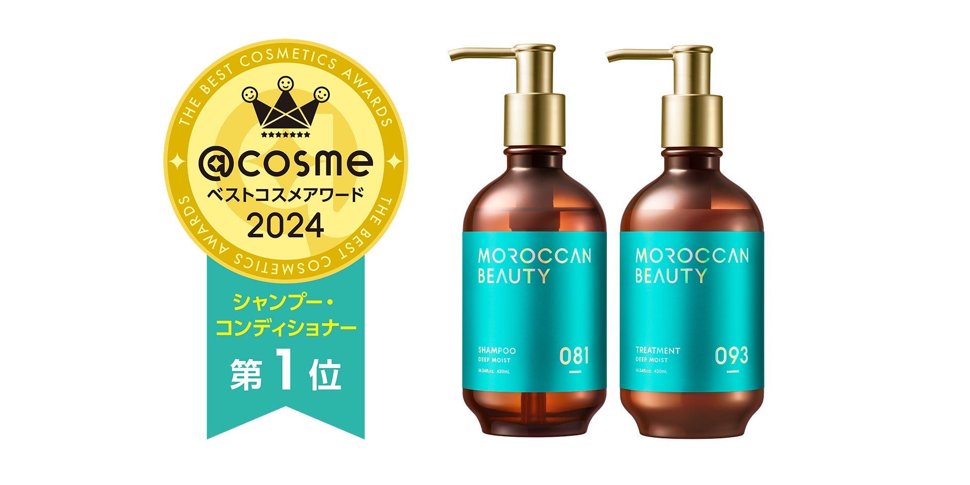 ボトルワークス株式会社のヘアケアブランド「MOROCCAN BEAUTY(以下:モロッカンビューティ)」の「ディープモイスト シャンプー/ヘアトリートメント」が、日本最大級のコスメ・化粧品・美容の総合情報サイト「@cosme(アットコスメ)」の「@cosmeベストコスメアワード2024」にて「ベストシャンプー・コンディショナー 第1位」を受賞いたしました。