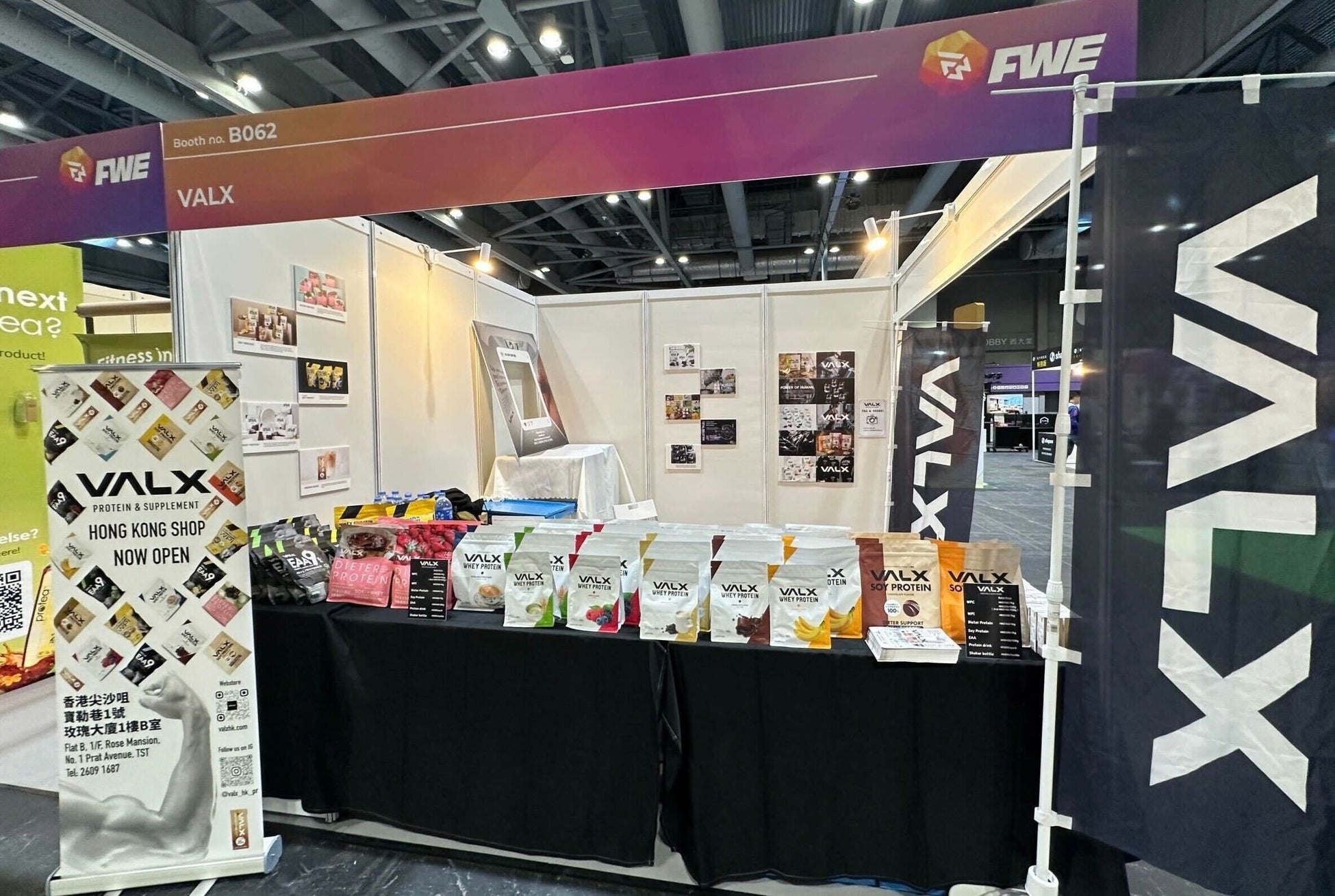 また、このパワーリフティングの大会は「FWE Hong Kong 2024」というイベントの一環として開催されており、イベントブースではVALX ホエイプロテインの試飲と販売を実施しました。