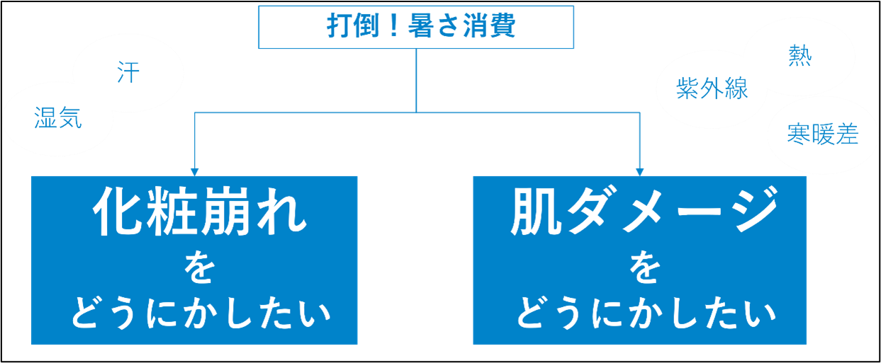 年々激しさを増す異例の暑さによって拭いても拭いても止まらないほど汗をかいたり、突然の気象の変化によって顔や髪が雨風にさらされることを誰しもが経験したであろう2024年。避けようのない「メイク崩れ」や、過酷な環境による「肌ダメージ」に見舞われた結果、生活者が投資したいと思うほどの価値を感じたのがベースメイクを中心とした「暑さに打ち勝てるアイテム=打倒暑さ消費」だったのではないのでしょうか。