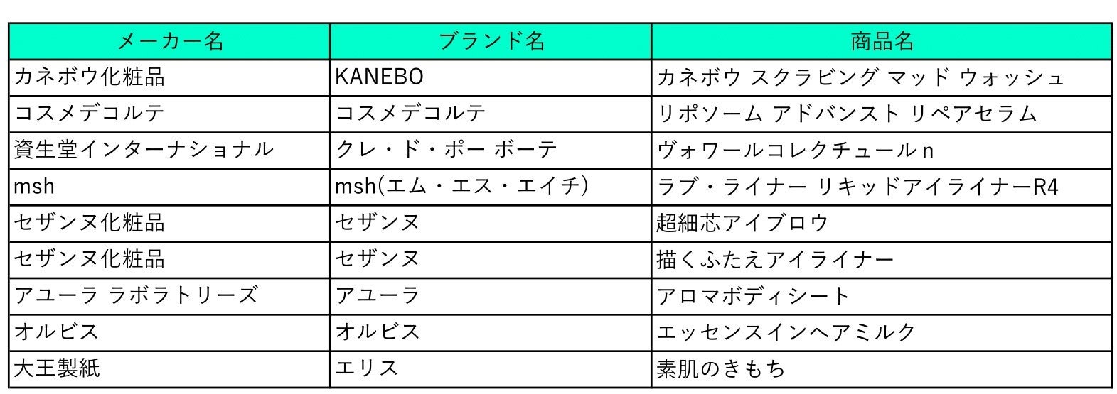 ※化粧品、医薬部外品、化粧小物、美容器具、美容家電、日用品、飲料として販売されているものを対象としています。