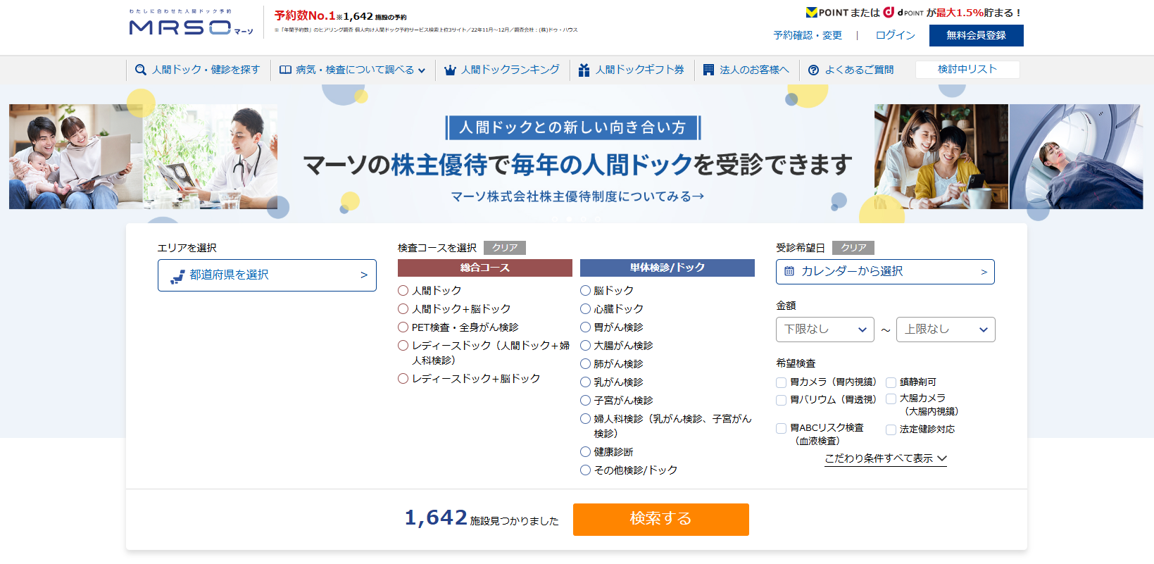 人間ドック・健診予約サイト「MRSO(マーソ)」