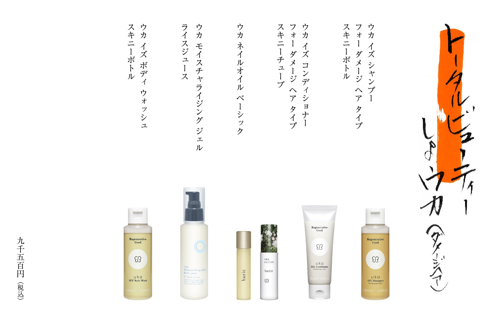 髪や頭皮、ボディから指先まで、ウカのトータルビューティーを楽しめるセット。シャンプー・コンディショナーはすべての髪質の方、髪にハリコシが欲しい方におすすめ。