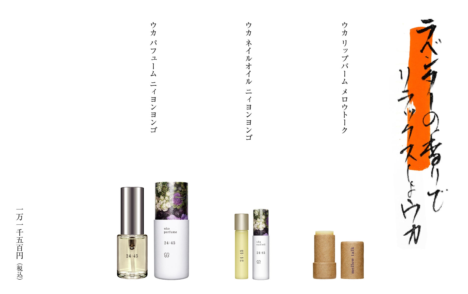 ラベンダーの落ち着く香りでリラックスタイムを。24:45のパフュームは寝る前のルームフレグランスとしても◎。リップにもラベンダーの香りを揃えてメローな気持ちに。