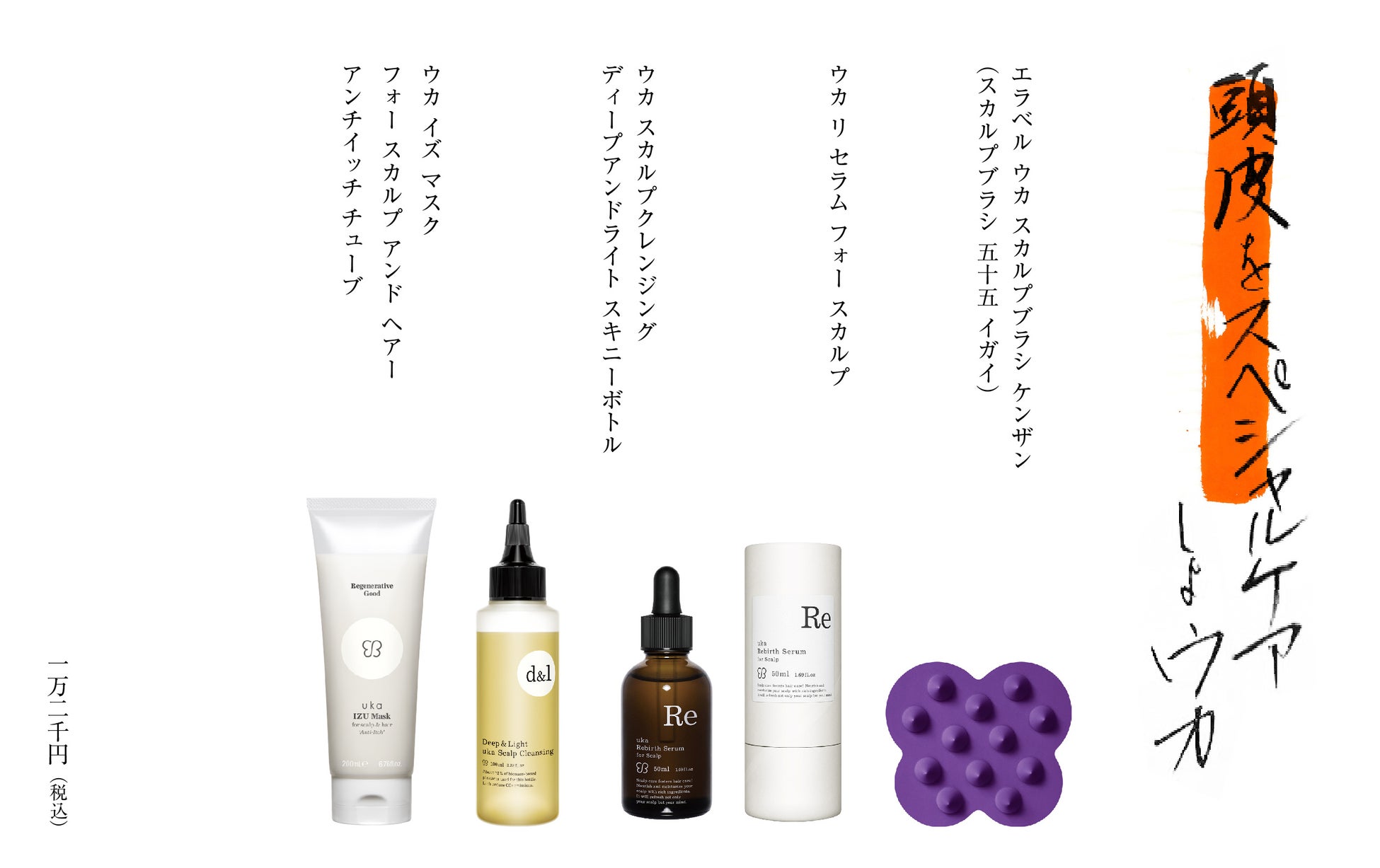 ウカのスカルプケアのフルラインが楽しめるセット。きれいな髪はきれいな頭皮から。2025年は健やかな頭皮を手に入れましょう。