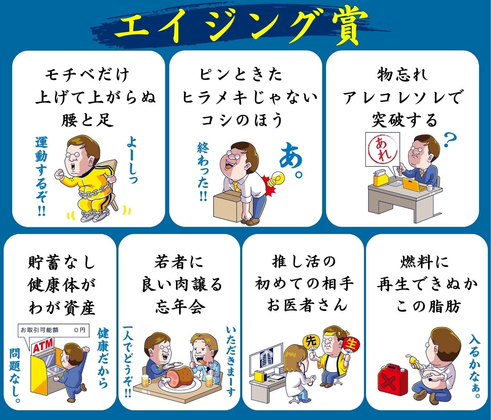 当社が考える”健康”とは、カラダの一部だけが良好な状態であることではありません。運動器、消化器、呼吸器などさまざまな器官が相互に影響し合い、バランスを保つことで全体的な健康を維持しています。この関わりを当社は「ヒューマンダイヤモンド」と名付けています。この考えに基づき、今回新たに「エイジング賞」を設けました。エイジング賞では、年齢を重ねることで感じるさまざまなカラダの器官の変化を単なる衰えではなく、前向きに受け止める姿勢を川柳で表現した作品を選定しました。