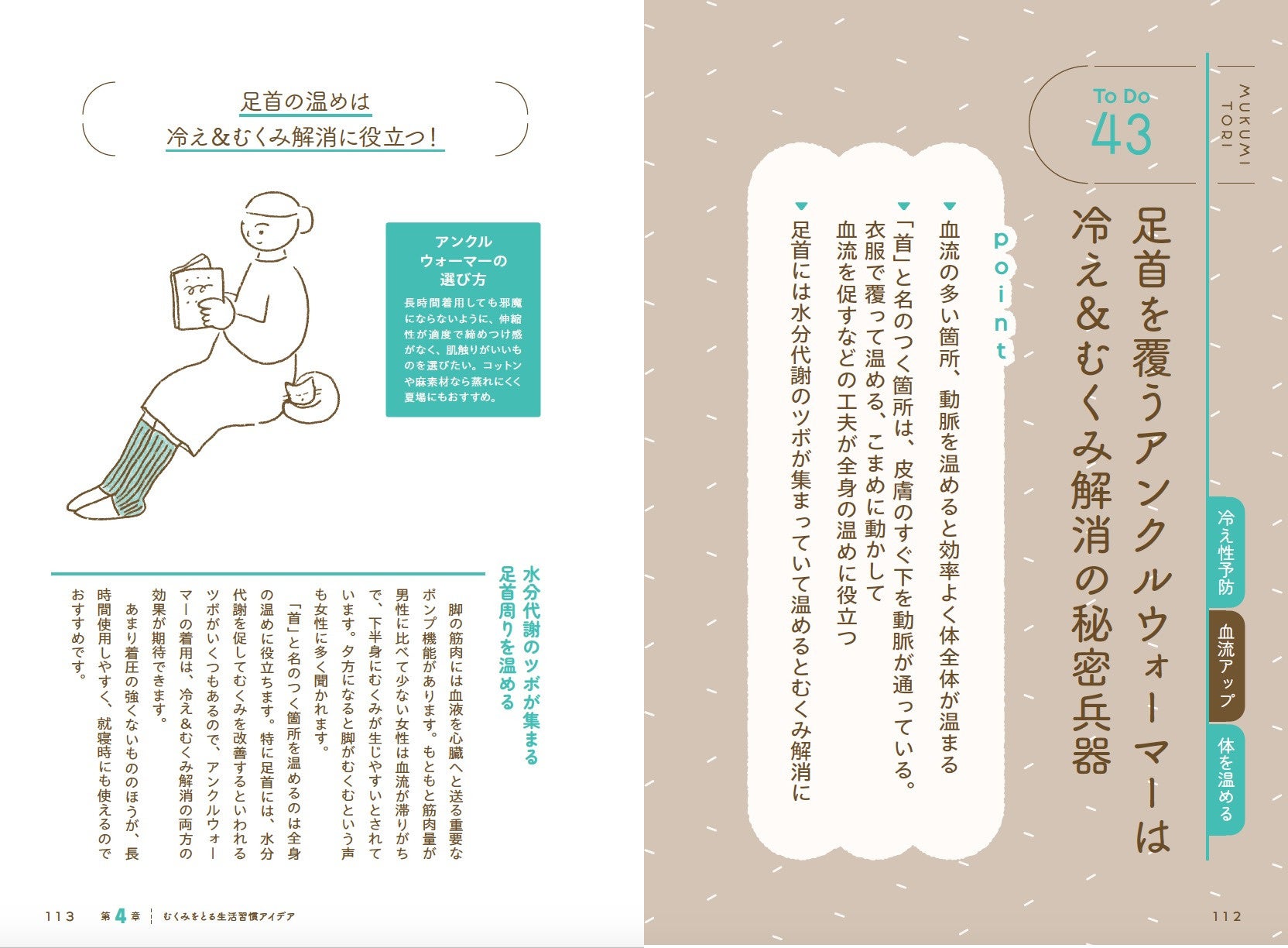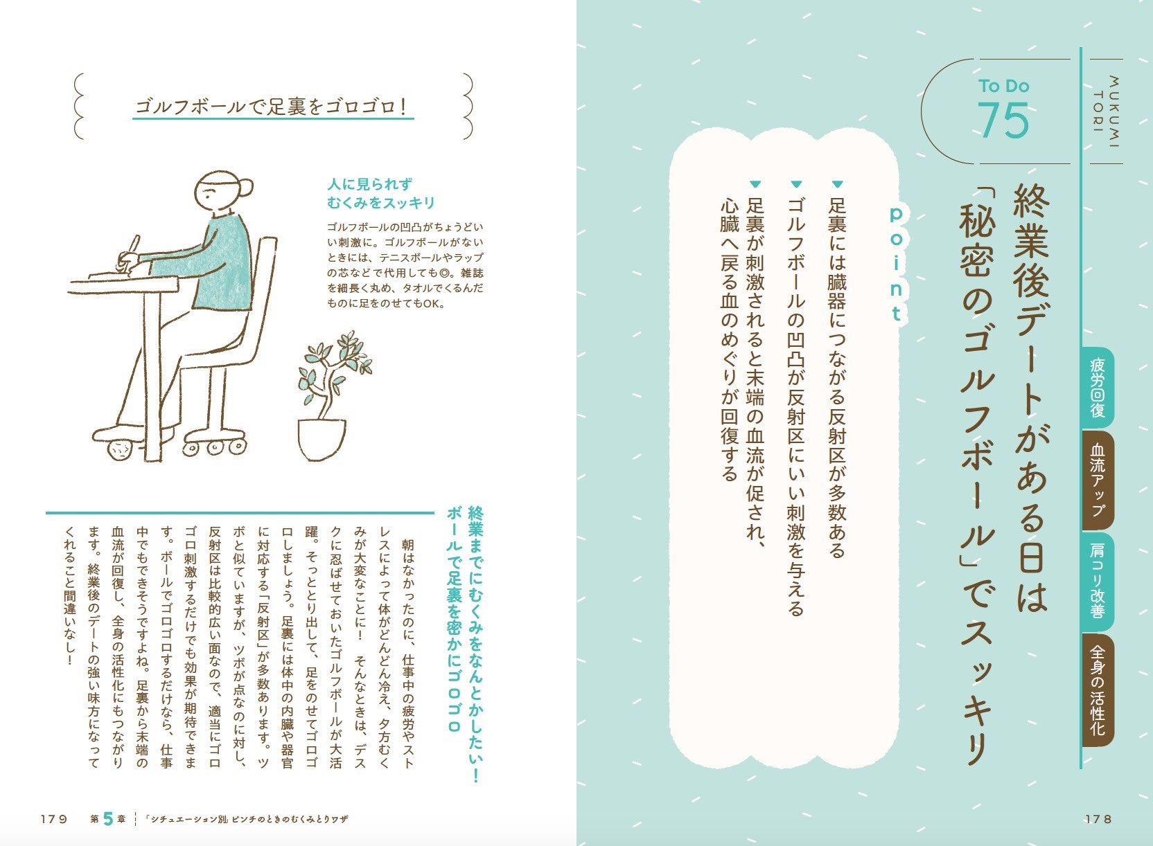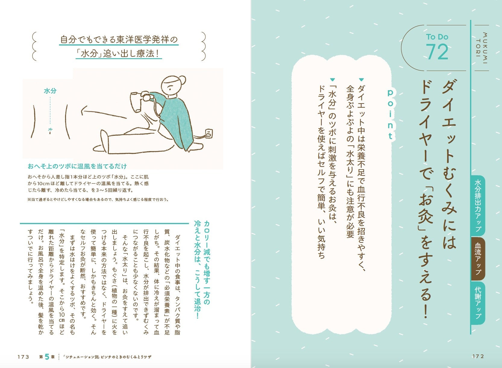 毎日飲むお茶の種類を変える、デスクでツボを押す など、すぐにできるアイデアで全身のめぐりを整えて、むくみ知らずの体を手に入れよう!
