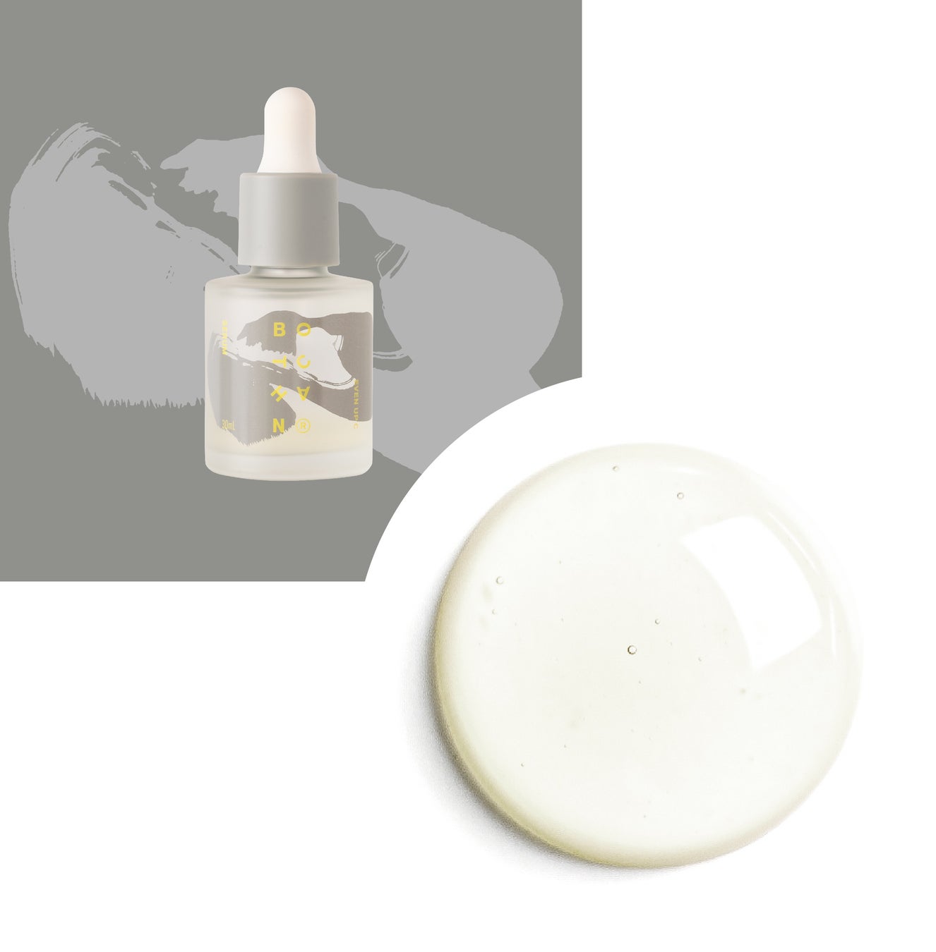 肌にすーっとなじみ、ベタつかずに保湿する導入エッセンス。ビタミン C 誘導体*⁵ に加え、ヒアルロン酸 Na やムラサキシキブ果実エキスなど、ゆらいだ肌のバリア機能をサポートする保湿成分とともに、BOTCHAN の「アドバンストアブソープションシステム」による海藻由来成分などの結合保湿成分*⁶ を配合。すばやく肌の角質層に届き、爽やかな使い心地でしっとりと潤いを与えることにより、肌のキメを整え、毛穴の開きが気にならない、明るく輝く肌印象へ導きます。