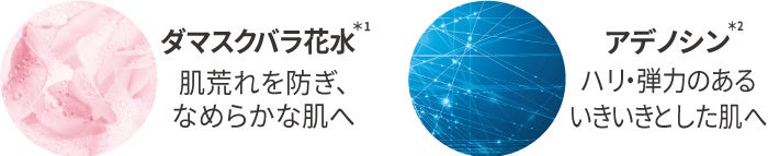 保湿成分ダマスクバラ花水*¹と整肌成分アデノシン*²配合。つややかに仕上げ、メイク中の肌を乾燥から守ります。