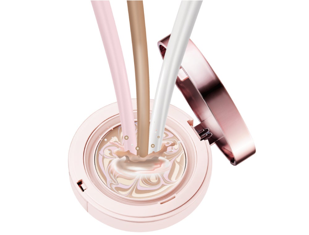 パクトを開けると目を引く3色のマーブル模様のバームファンデーション。塗布する際に各色が肌表面で混ざりあいリッチな艶感とナチュラルカバーのベースメイクが完成します。肌温度で溶け出しピタッと高密着。なめらかなつけ心地で保湿効果にも考慮し、SPF50+ PA++++の日焼け止め機能、化粧下地としてもお使いいただけるオールインワンファンデーションです。乾燥しがちなこれからの季節、毎朝のベースメイク作りに取り入れてこの冬は乾燥の気にならない肌に仕上げませんか?キラキラのピンク色パクトは持っているだけで気分が明るくなるよう、ギフトにもおすすめです。