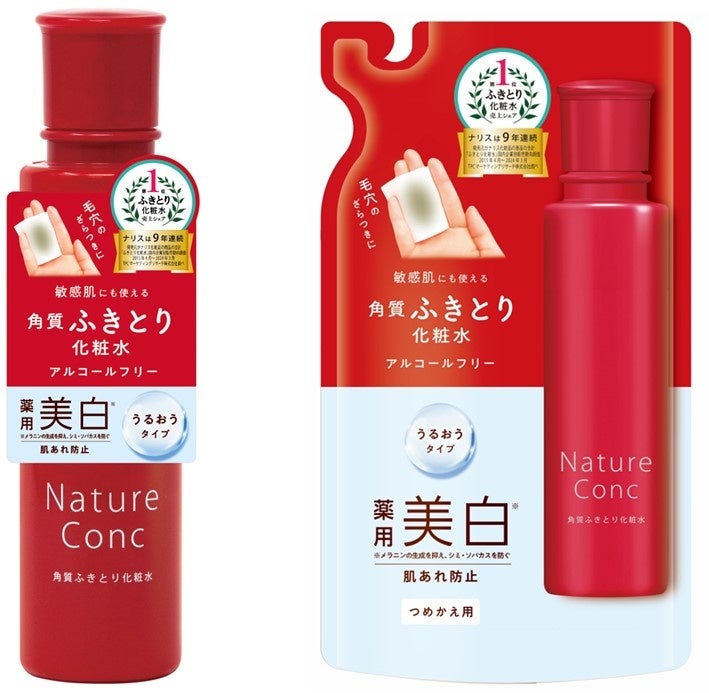 当社の調査では、一般的にふきとり化粧水は、老化角質を取り除くケアであるため、刺激が強いというイメージを持っている人が多く存在します。「ネイチャーコンク」は、90年近く続く角層研究をもとにハトムギや月見草など植物由来の保湿成分のチカラで毎朝晩気持ちよくケアできることが健やかな肌に導く秘訣です。今回新しく敏感肌の人の協力によるパッチテストを実施しクリアしています。美白※3・ニキビ予防・肌あれ防止に加えて、毛穴のざらつきケアまでできる「ネイチャーコンク」。実は朝の洗顔代わりにも使用することができ、使用者や使用シーンに広がりが生まれています。今回のリニューアルは医薬部外品をイメージしやすいパッケージに刷新。敏感肌の人も含めてより多くの人の肌悩みにこたえるブランドに育てていきたいと考えます。 ※3 メラニンの生成を抑え、シミ・そばかすを防ぐ。