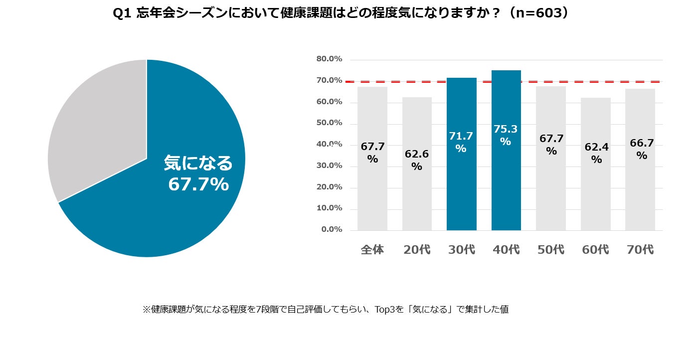 I. 忘年会シーズンの健康課題67.7%が不安を抱える、30~40代では約7割超に