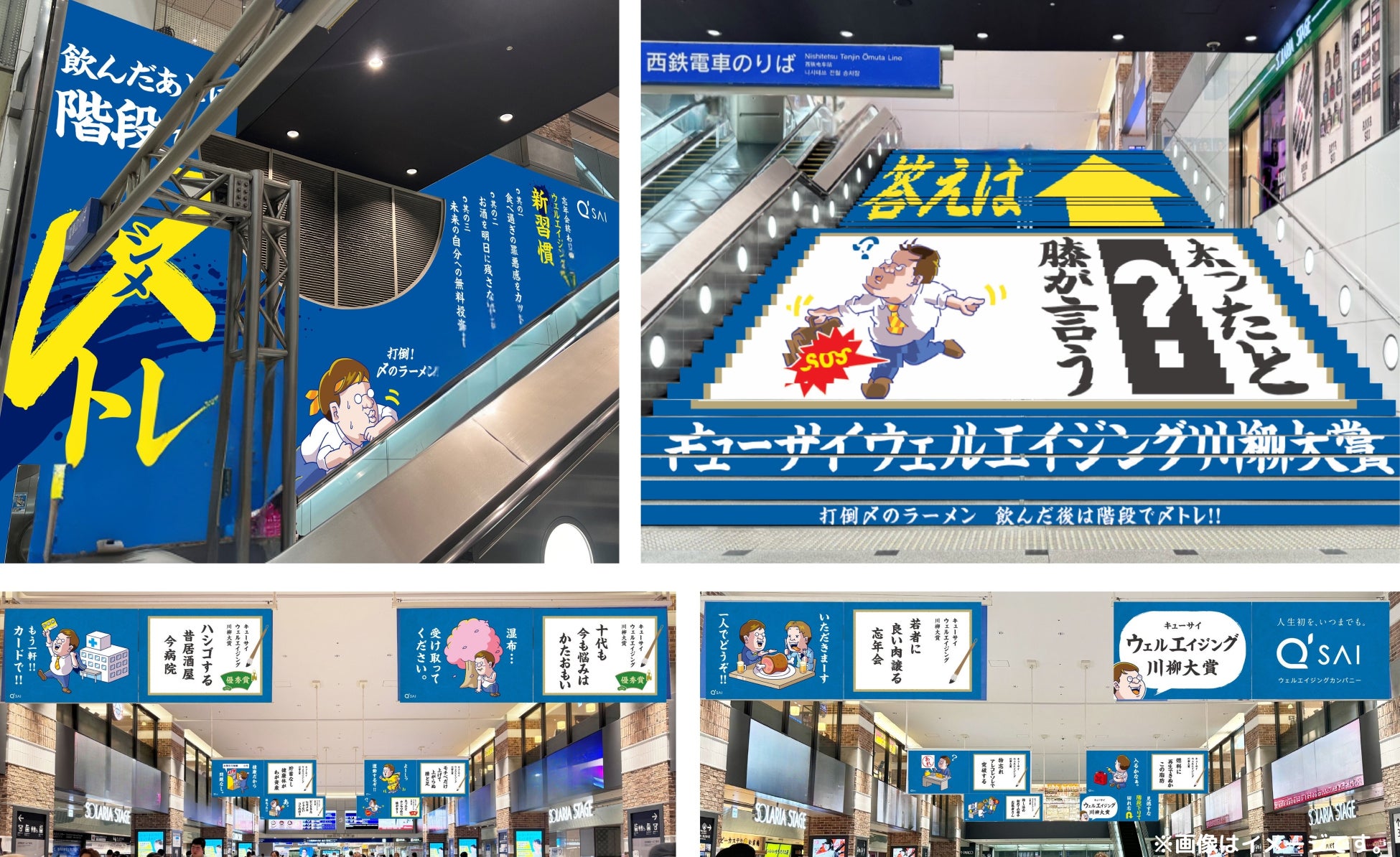 キューサイ株式会社(本社:福岡市中央区、代表取締役社長:佐伯 澄)は、全国20~79歳の603名を対象とした、「忘年会シーズンにおける健康課題と飲食実態」に関する調査を実施しました。調査結果では、67.7%が健康面での課題を感じており、特に働き世代である30~40代では7割を超えるという実態が判明しました。この結果を踏まえ、当社は忘年会後の定番「〆のラーメン」に代わり、駅階段を活用した「新習慣「〆トレ」を提案する場として、12月9日(月)から15日(日)までの7日間、西鉄福岡(天神)駅での広告展開を行います。また本広告では、当社公式Xアカウントで10月に開催し、健康への想いを詠んだ「第2回ウェルエイジング川柳大賞」の受賞作品も展示します。この取り組みを通じて、福岡から新しい健康習慣の発信を目指してまいります。