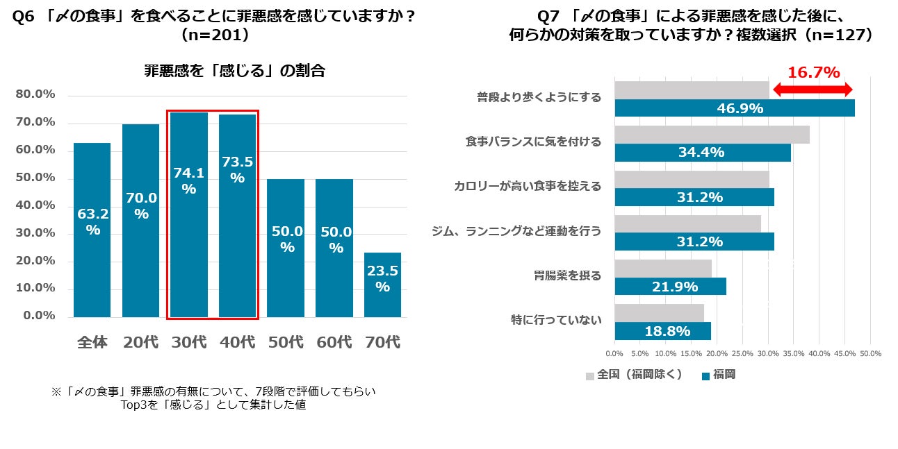 IV. 「〆の食事」に6割超が罪悪感、福岡では「歩く」が対策として高い傾向