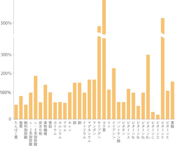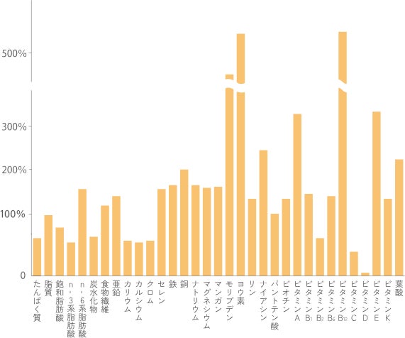 ※栄養素等表示基準値(18才以上、基準熱量2,200kcal)に基づき、1日分の基準値の1/3を100とした場合