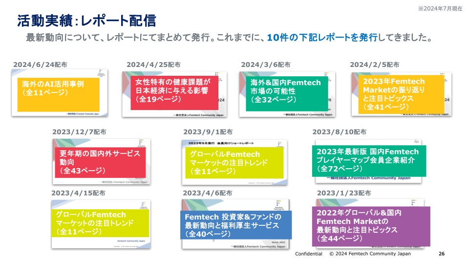 当団体では設立以降、海外動向や更年期をはじめ、10件のレポートを配信してきました。