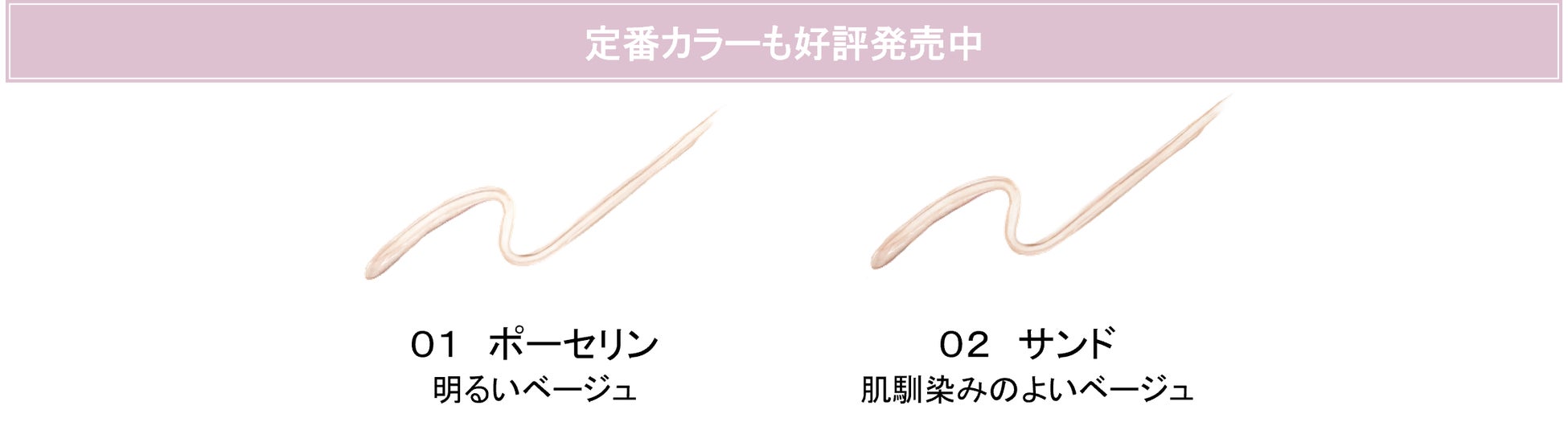 クイックフィット成分配合でピタッと密着。馴染ませても薄れにくく、高いカバー力を保ちます。