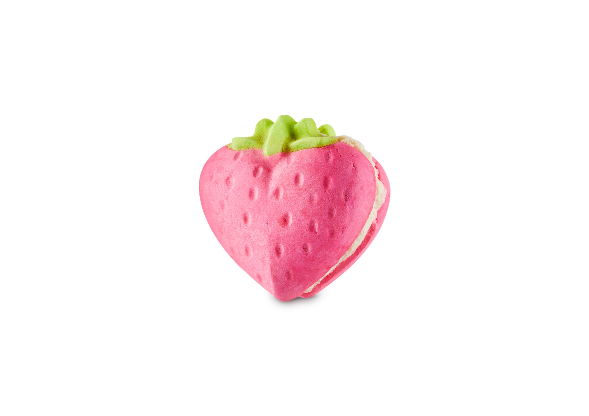お肌の調子を整えてツヤを与える本物のイチゴとお肌の潤いを保ちながら肌触りを柔らかくするフェアトレードのオーガニックカカオバターがタッグを組んだバブルバー(泡風呂入浴料)。イチゴは昔からバレンタインデーや恋と結び付けられてきました。マカロンのフィリングのように、バブルバーの間にサンドしたカカオバターが肌触りをしっとりなめらかに導きます。ジューシーでベリースムージーのような甘いバスタイムをお楽しみください。