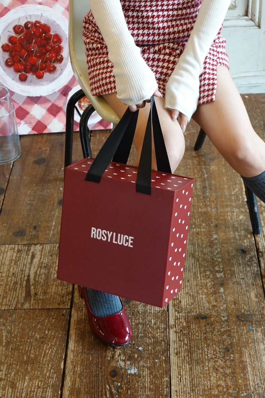 Rosyluceのブランドカラーでもあるレッドにハートをデザインした