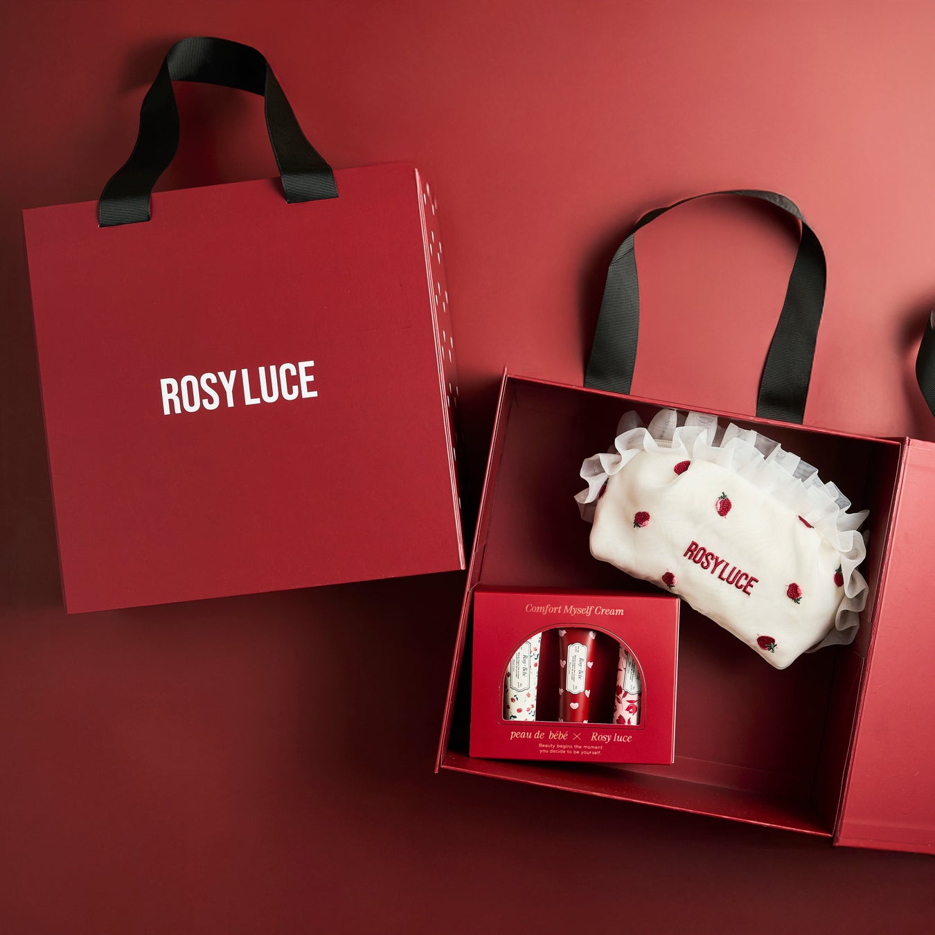 Rosy luce初のオリジナルポーチの3点セットでお届けする、Christmas Gift Box SETを同時販売。