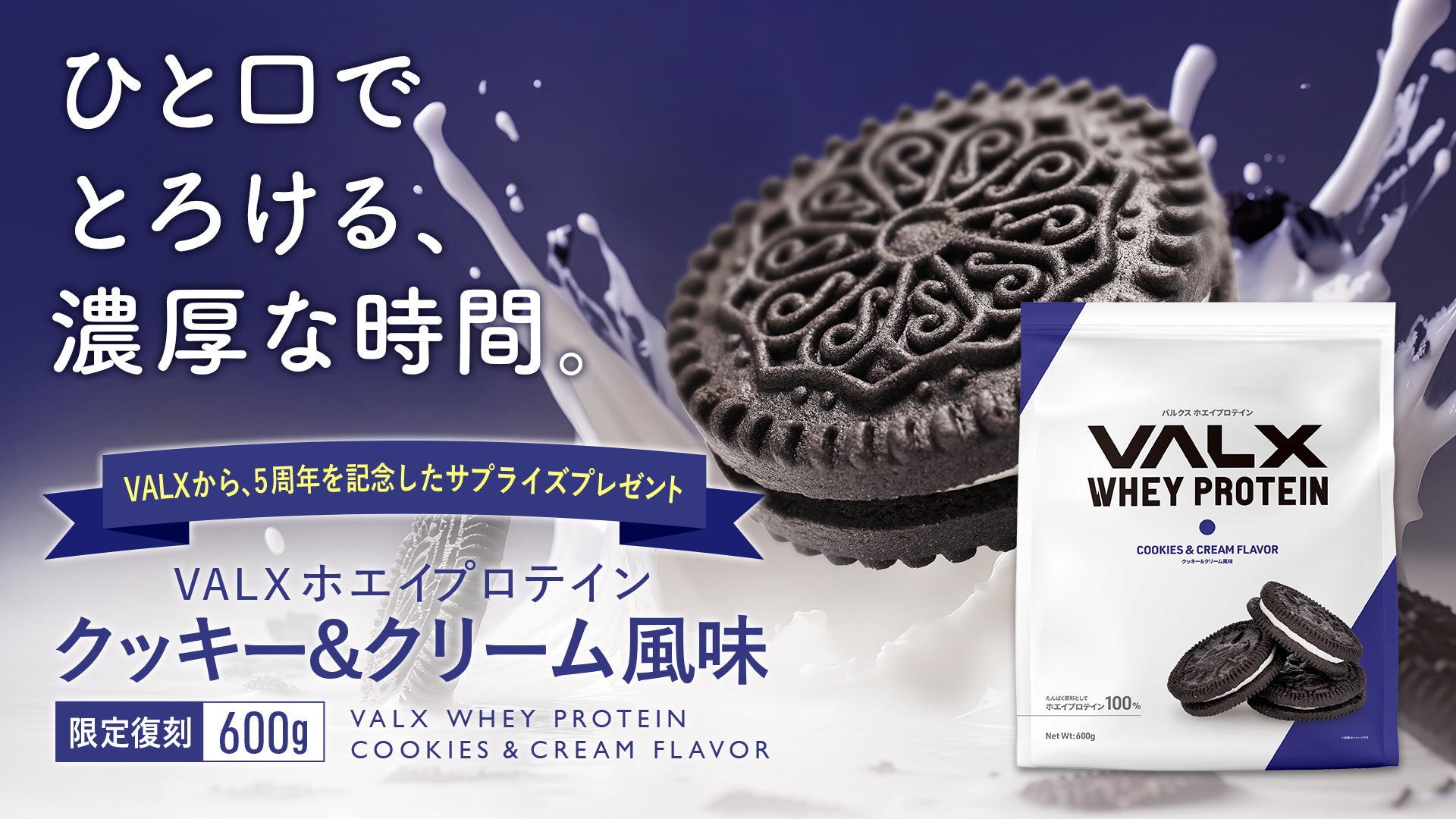 当社は、5周年を記念してVALXからのサプライズプレゼントということで、2024年11月28日(木)よりVALXメンバーズストアにて先行予約販売をしていました。この度、圧倒的な人気を誇る「クッキー&クリーム風味」をVALXメンバーズストアにて一般販売を開始します。