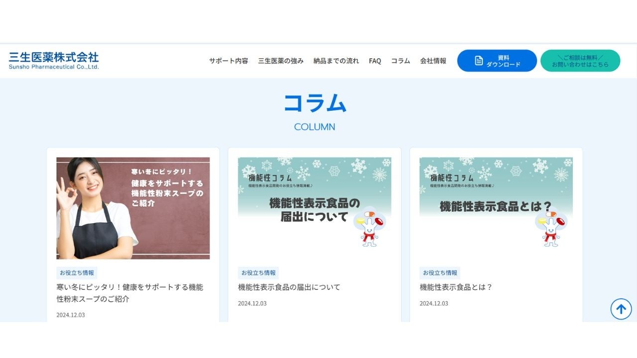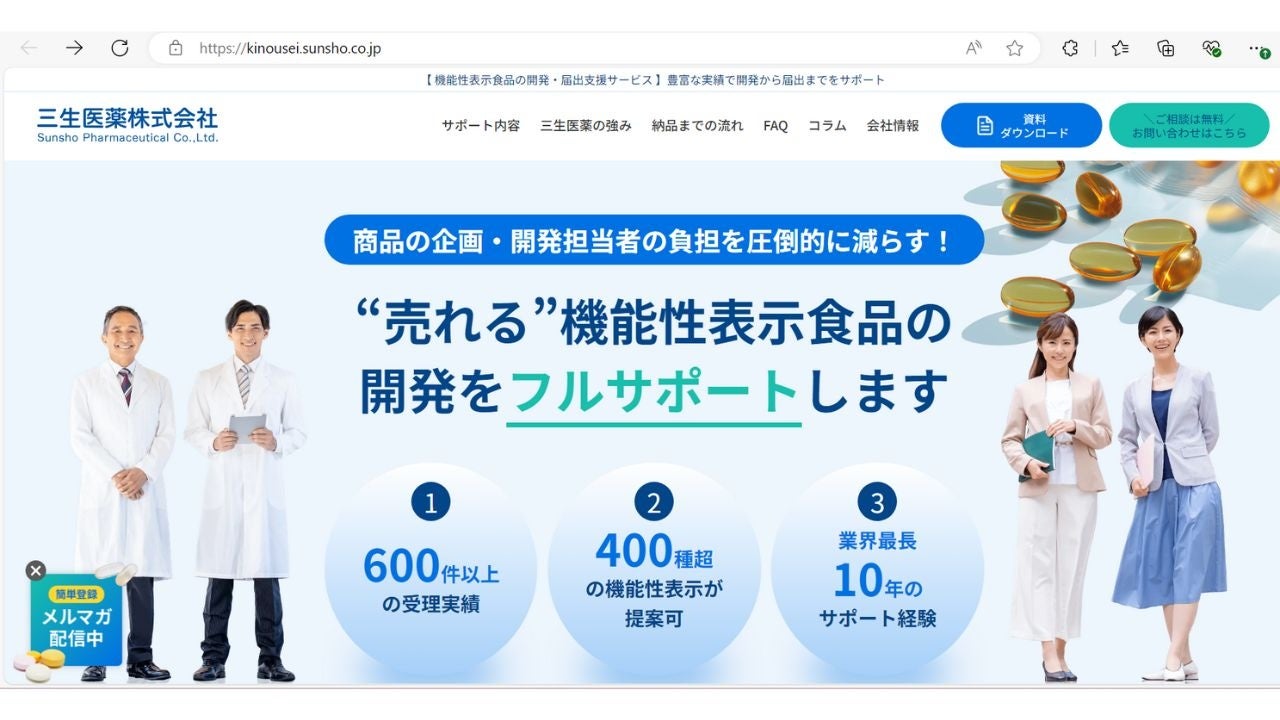 健康食品・医薬品等の受託開発製造カンパニー、三生医薬株式会社(本社:静岡県富士市、代表取締役社長:今村 朗、以下「三生医薬」)は、業界最長の10年間に及ぶ機能性表示食品の開発サポートや、累計600件以上の受理実績で培った経験を活かして、これから新規参入を検討する企業様を対象にしたオウンドメディアを正式リリースいたしました。