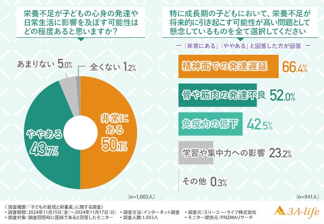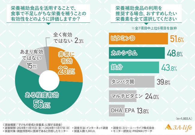 スリーエー・ライフ株式会社(所在地:東京都世田谷区、運営責任者:二宮 大次郎)は、医師を対象に、「子どもの育成と栄養素」に関する調査を実施しました。