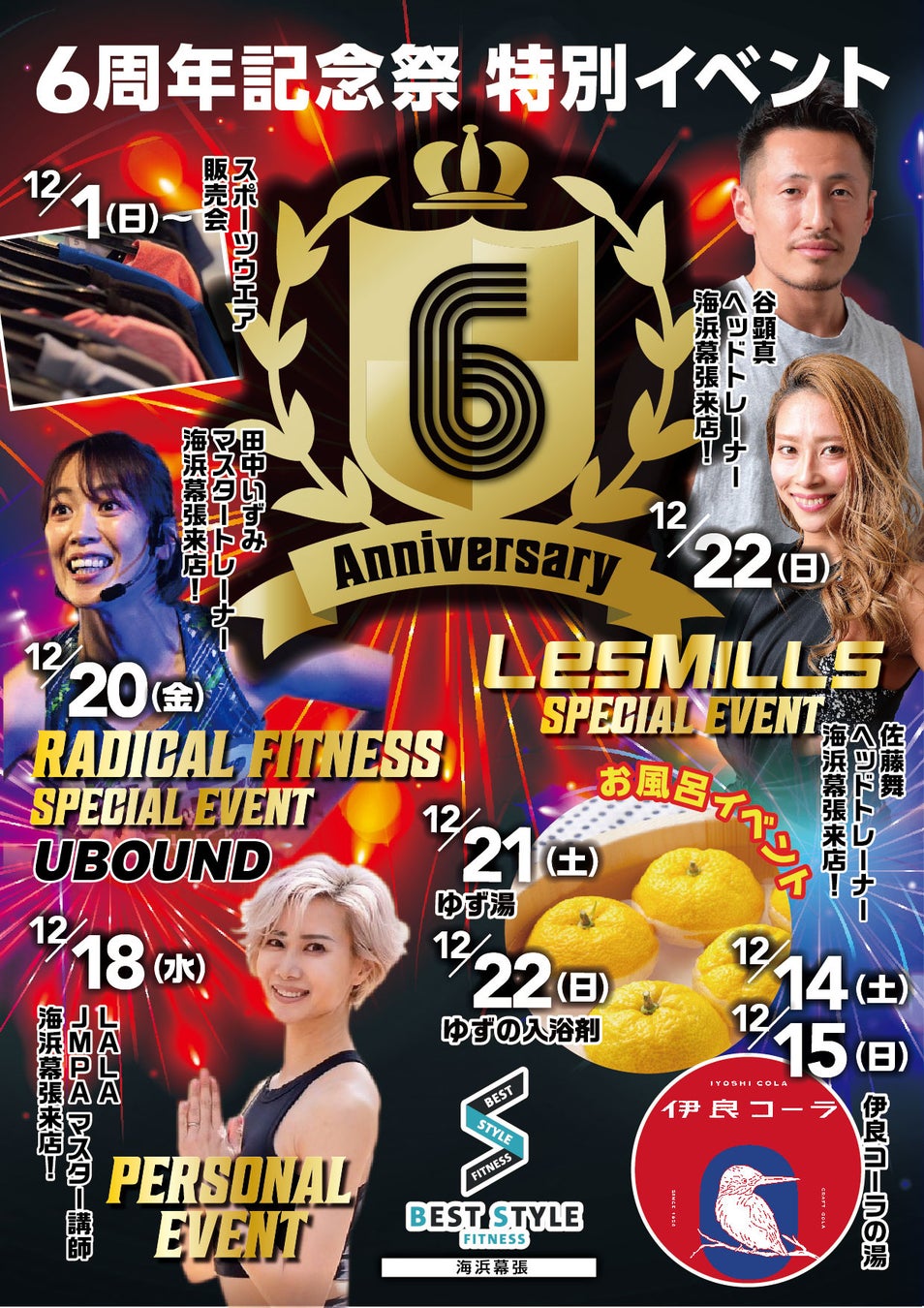 株式会社BEST HERBS(代表取締役社長 塚田 正之:東京都新宿区市谷仲之町3-5)が運営するベストスタイルフィットネス海浜幕張 (https://beststylefitness.jp/makuhari)がオープン6周年を記念した6大イベントを開催します。