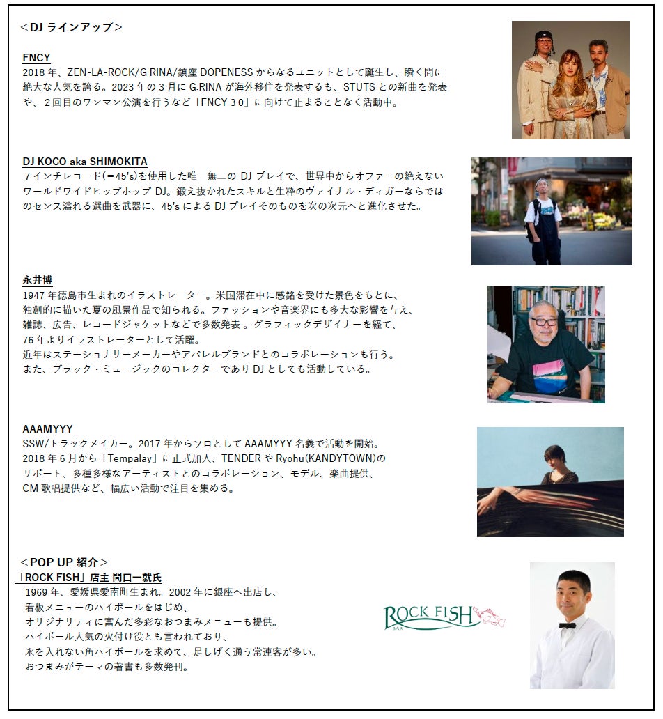 新年だからこそ集まった豪華でなかなかお目にかかれない、まさに眼福なアーティストたちと、東京を代表するハイボールの聖地と呼ばれるバー「ROCK FISH」が集結。至高のハイボールを味わい(味福)ながら、最高のグッドミュージック(音福)をお楽しみください。