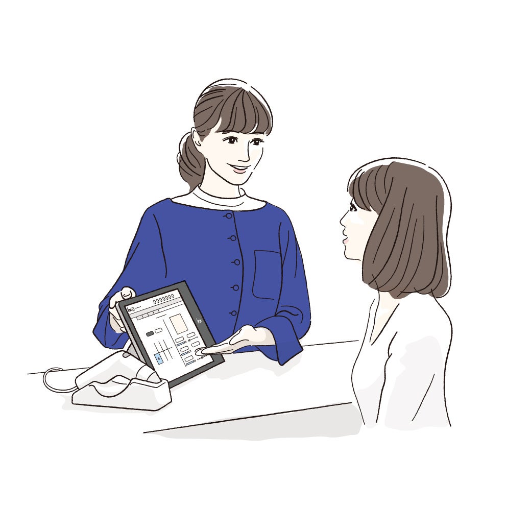 レシピストによるヒアリングと、独自の肌測定器「イプサライザー」でお客さまだけのお手入れ方法「レシピ」を診断します。