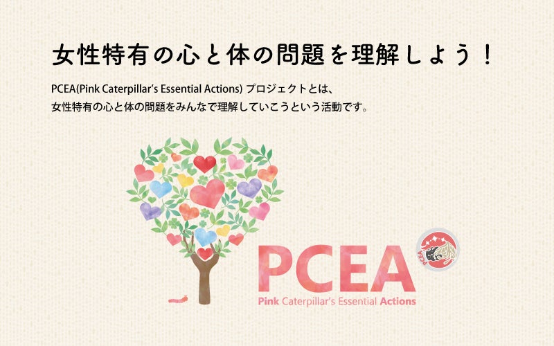 そこで、私たちは、PCEA(Pink Caterpillar‘s Essential Actions)というプロジェクトを立ち上げ、女性の心と体の問題・課題を広く知ってもらうための活動をスタートさせました!