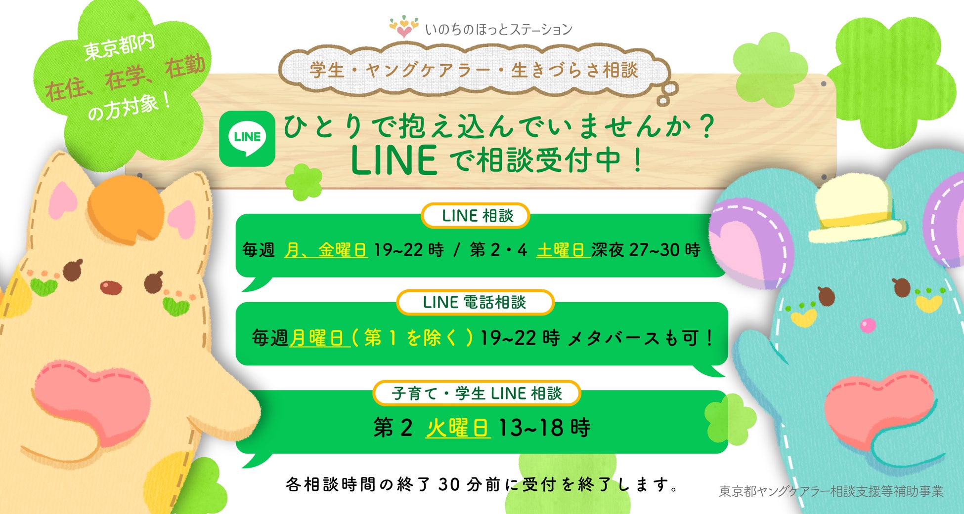 ・SNS相談:月金19〜21:30&第2・4土曜27~30時