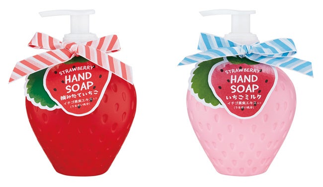 いちごのフォルムとおいしそうな香りが楽しい、ふたつ並べたくなるような手洗い用液体ソープ。泡立ちよくすっきりと手肌を洗い上げます。