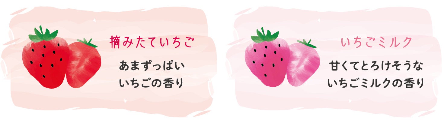「摘みたていちご」と「いちごミルク」の2つの香りとフォルムに惹かれる「いちご」シリーズ。