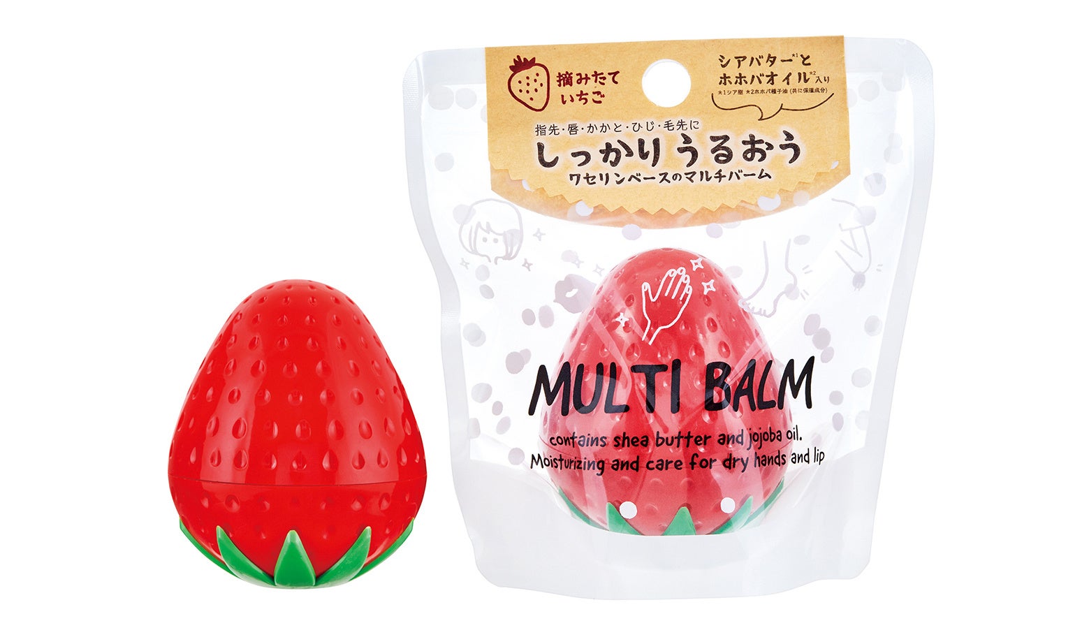 いちごのフォルムがインパクト大!置いておきたくなる保湿バーム。摘みたていちごの香り。