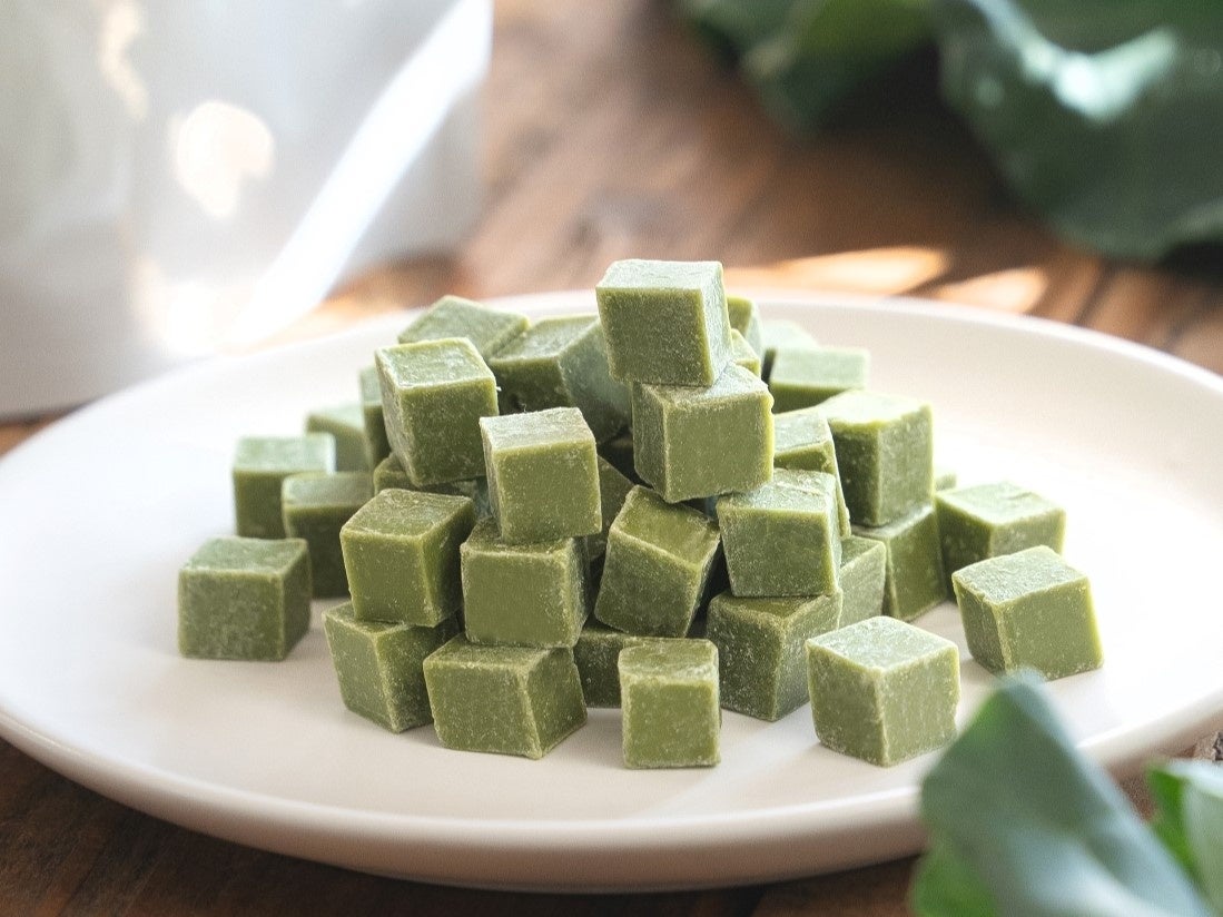 【原材料名】砂糖(国内製造)、植物油脂、ココアバター、澱粉分解物、ケール粉末、豆乳粉末/乳化剤、(一部に乳成分・大豆を含む)
