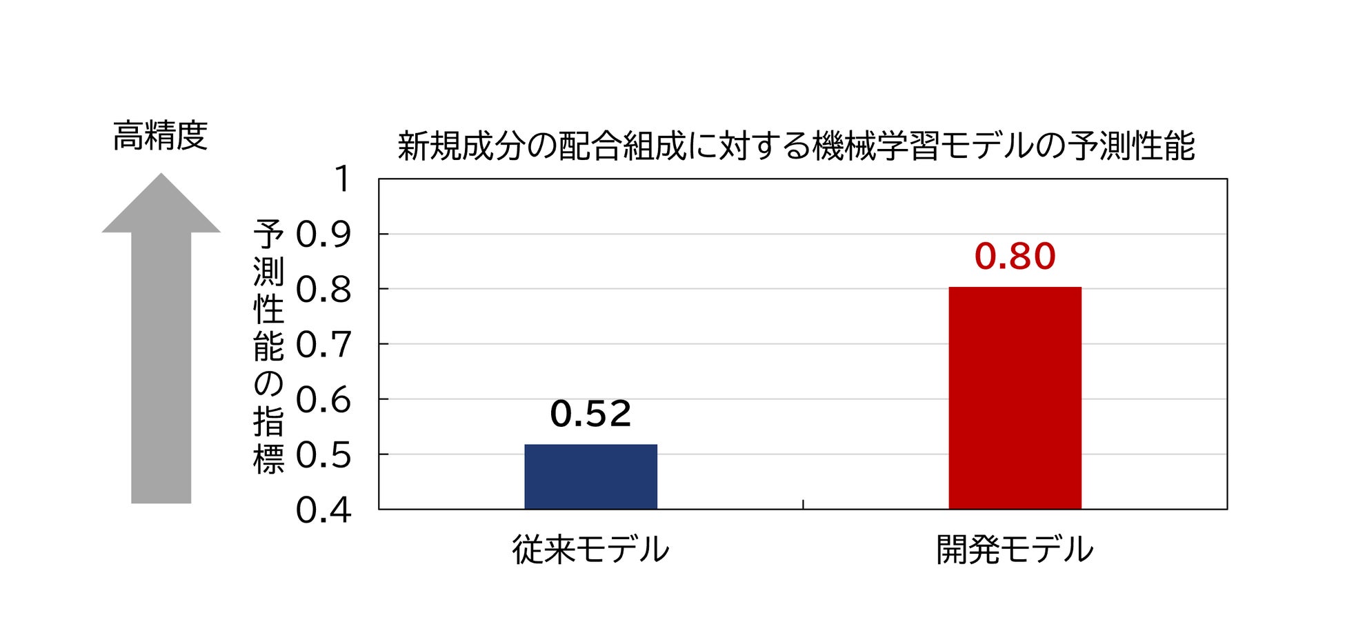 一方、より高品質な製品を開発するためには、過去の研究データがない新規成分を探索し、その膨大な組み合わせの中から、研究データや研究員の知見に基づいて候補組成を設計し、実験を繰り返すことが必要でした。しかし、新規成分を配合した組成では、得られる品質の特徴やその品質を左右する要因の予測が難しく、一定の検討期間を要していました。