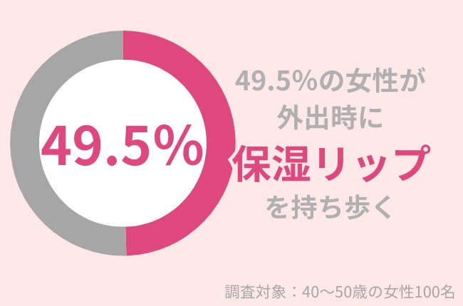 調査の結果、半分弱の方が保湿リップを持ち歩くことがわかりました。乾燥シワのない、うるおった唇は、若々しく健康な印象を与えます。したがって、そのような印象を与えたい方は、保湿リップを持ち歩き、こまめにリップケアを行ってください。