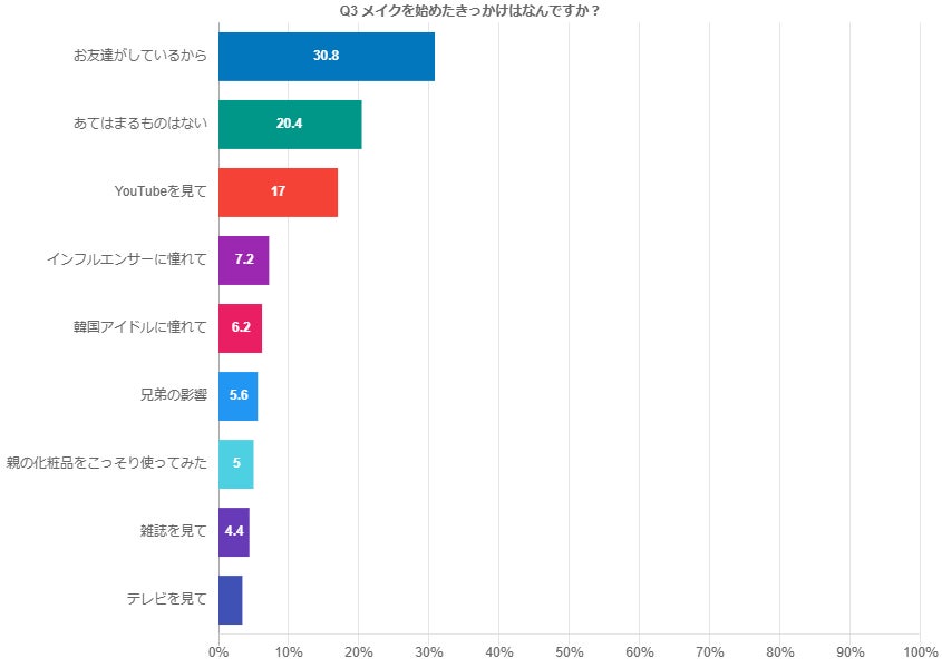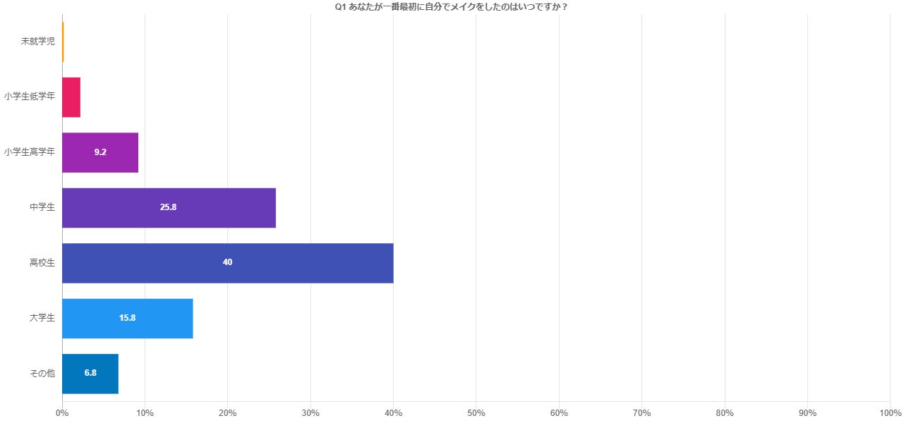 一番多かったのは高校生、次いで中学生でしたが、小学生、特に低学年からメイクをする子供たちもいてメイクの低年齢化が進んでいることが明らかになりました。