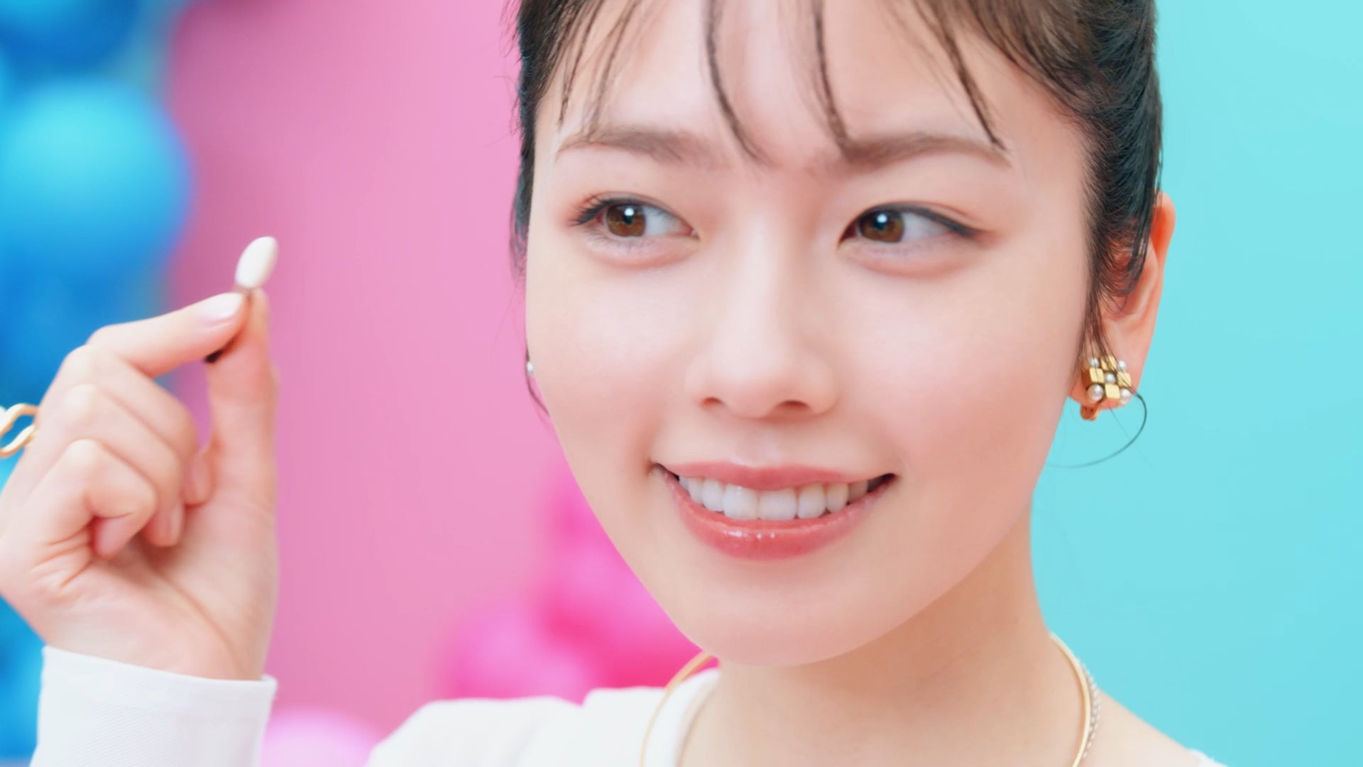 30秒Ver.では、小芝さんが「もっとぷっくりのNeoでた!」と、新商品「プランぷくコーデアイズNeo」 N01 しらたまプランぷくを紹介するシーンが流れます。
