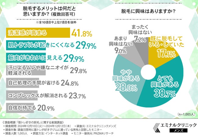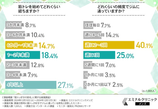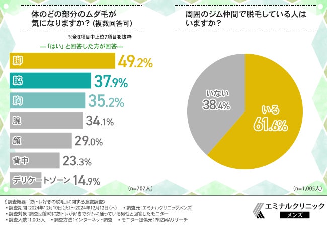 そこで今回、メンズ専用脱毛クリニック・エミナルクリニックメンズは、筋トレが好きでジムに通っている男性を対象に、「筋トレ好きの脱毛」に関する調査を実施しました。