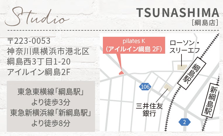住所:〒223-0053 神奈川県横浜市港北区綱島西3丁目1-20 アイルイン綱島2階