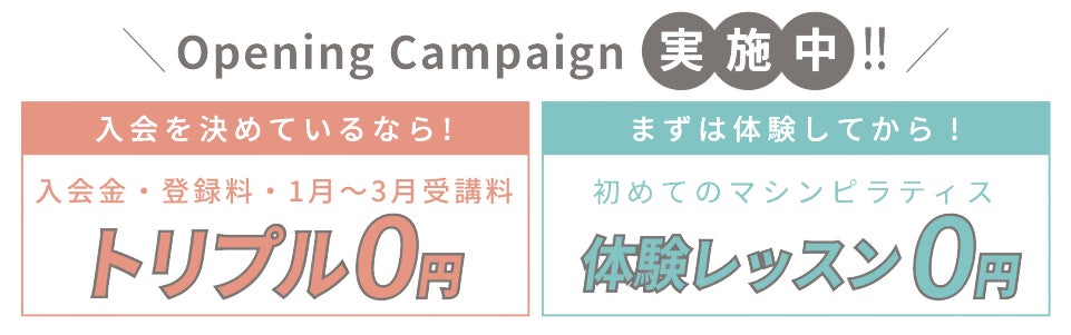 マシンピラティスを始めたいけど何を着たらいいかわからない!という方にうれしい『手ぶら無料体験』(※靴下はご持参ください)や、お客様に合わせた選べるキャンペーンを実施中です。