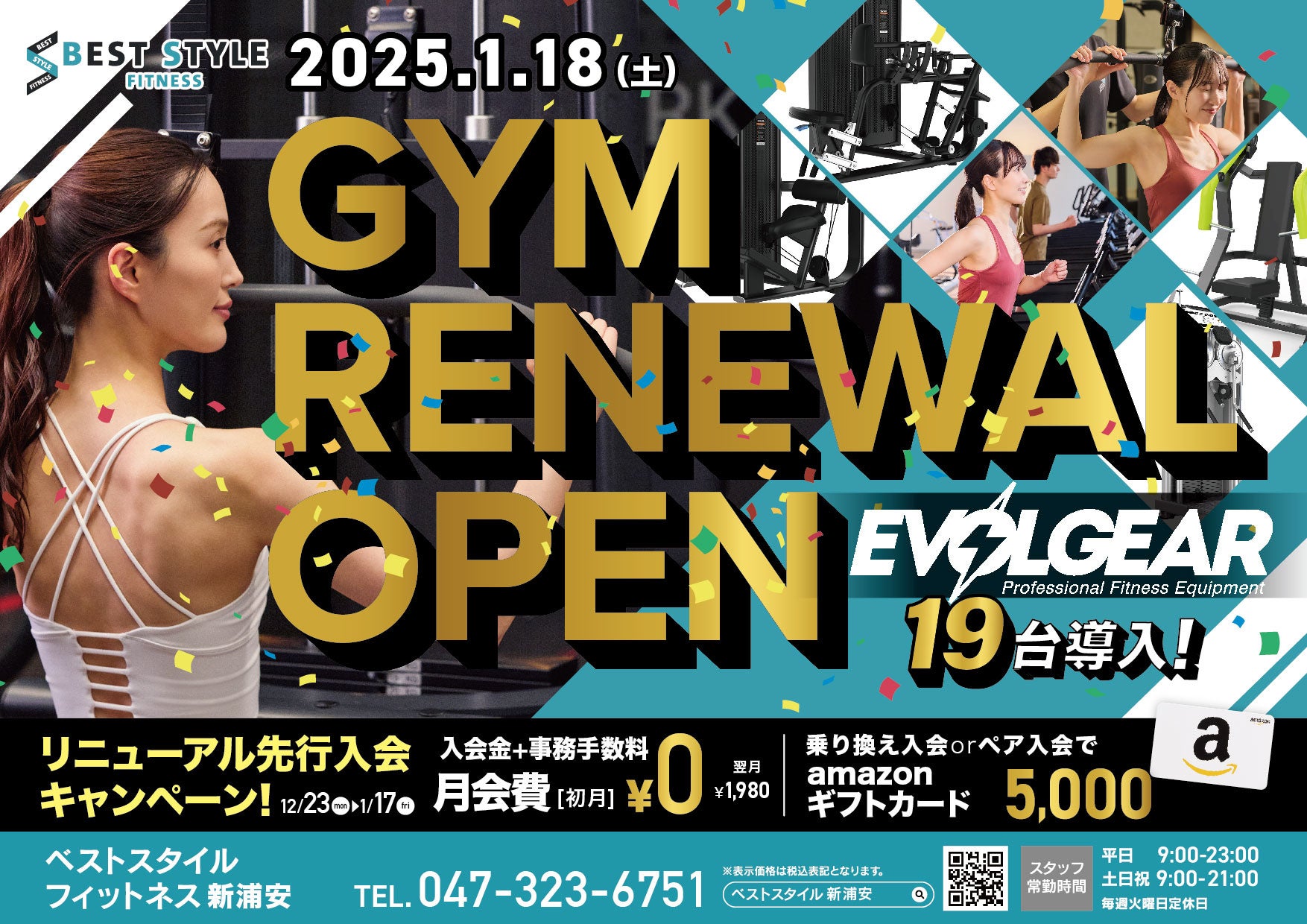 ただいまベストスタイルフィットネス新浦安店ではリニューアル先行入会キャンペーンを開催中で、非常にお得にスタートすることが可能です。