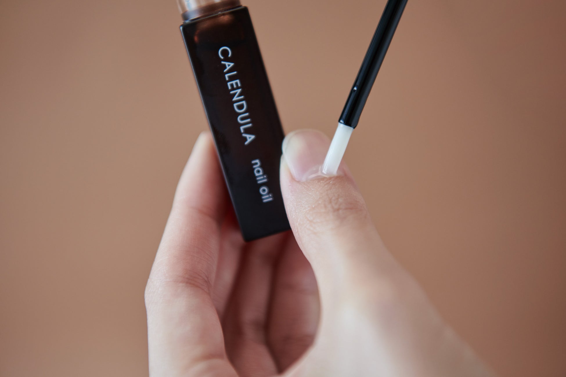ホホバ油、アーモンド油(いずれも植物由来保湿成分)配合。爪と爪周りの皮膚の乾燥・ひび・あかぎれを防ぎます。爪周りにオイルを塗布しやすいハケタイプ。