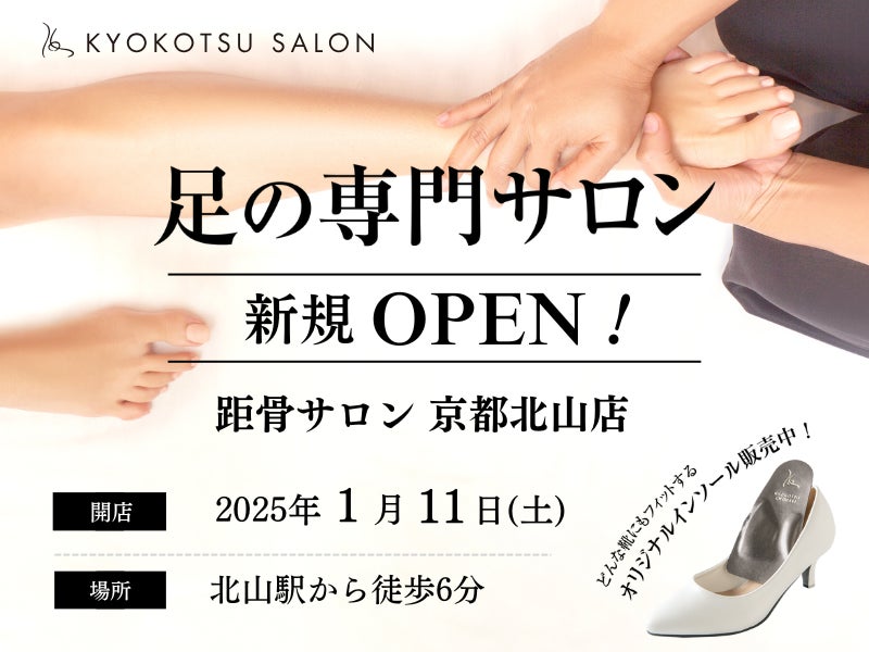 SNSで話題の足の専門サロン「距骨サロン」が、全国89店舗目となる「距骨サロン京都北山店」を2025年1月11日(土)に京都市営地下鉄烏丸線「北山駅」から徒歩5分の好立地に新規OPENいたします。