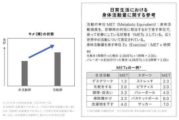 「日常生活における活動量が多いと、肌のキメの状態が良好」